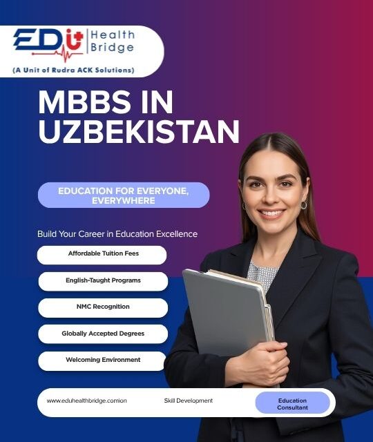 Looking for an affordable MBBS abroad option? Choose Uzbekistan for quality medical education at low fees. Indian students can benefit from NMC-approved universities, English-medium courses, and a simple admission process without donation. Start your journey toward becoming a doctor today with expert support from EduHealth Bridge. We provide complete assistance including counseling, admission, documentation, and visa support. Secure your seat for MBBS in Uzbekistan 2026 and take the first step toward a successful medical career with trusted guidance.