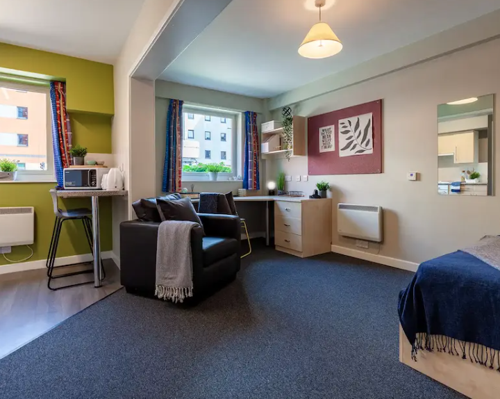 It boasts two major types of rooms, including studios and en suites, starting at an affordable weekly rent. The exclusive amenities that you can avail yourself of consist of fully furnished rooms, high-speed Wi-Fi throughout the property, modern study spaces for focused learning, spacious communal areas and social lounges, and many others.