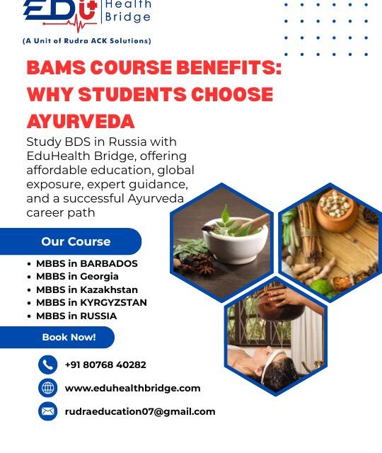 Planning to study BAMS in Russia in 2026? The total fee ranges from ₹15–30 lakhs for the complete course, including tuition, hostel, and basic expenses, making it a highly affordable option for Indian students . With no donation and globally recognized universities, Russia offers quality medical education at low cost. Get complete guidance on admission, eligibility, and university selection with expert support from EduHealth Bridge. Apply now to secure your seat and start your medical journey abroad with trusted consultancy services and hassle-free admission process.